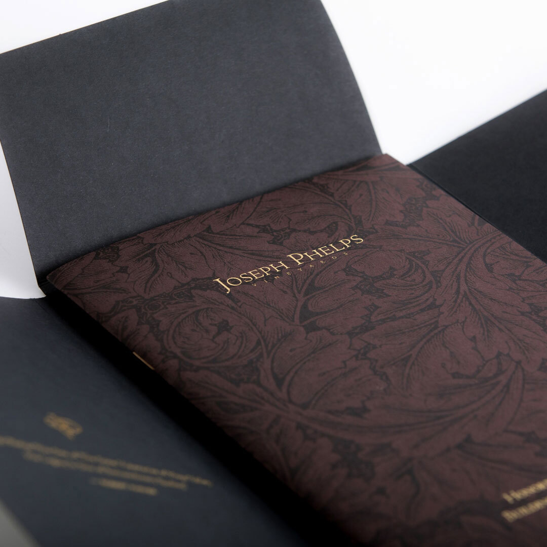 The brochure of Joseph Phelps, a winery in Napa Valley, California, is currently being featured in "This Paper, That Paper" by Takeo, a paper trading company.