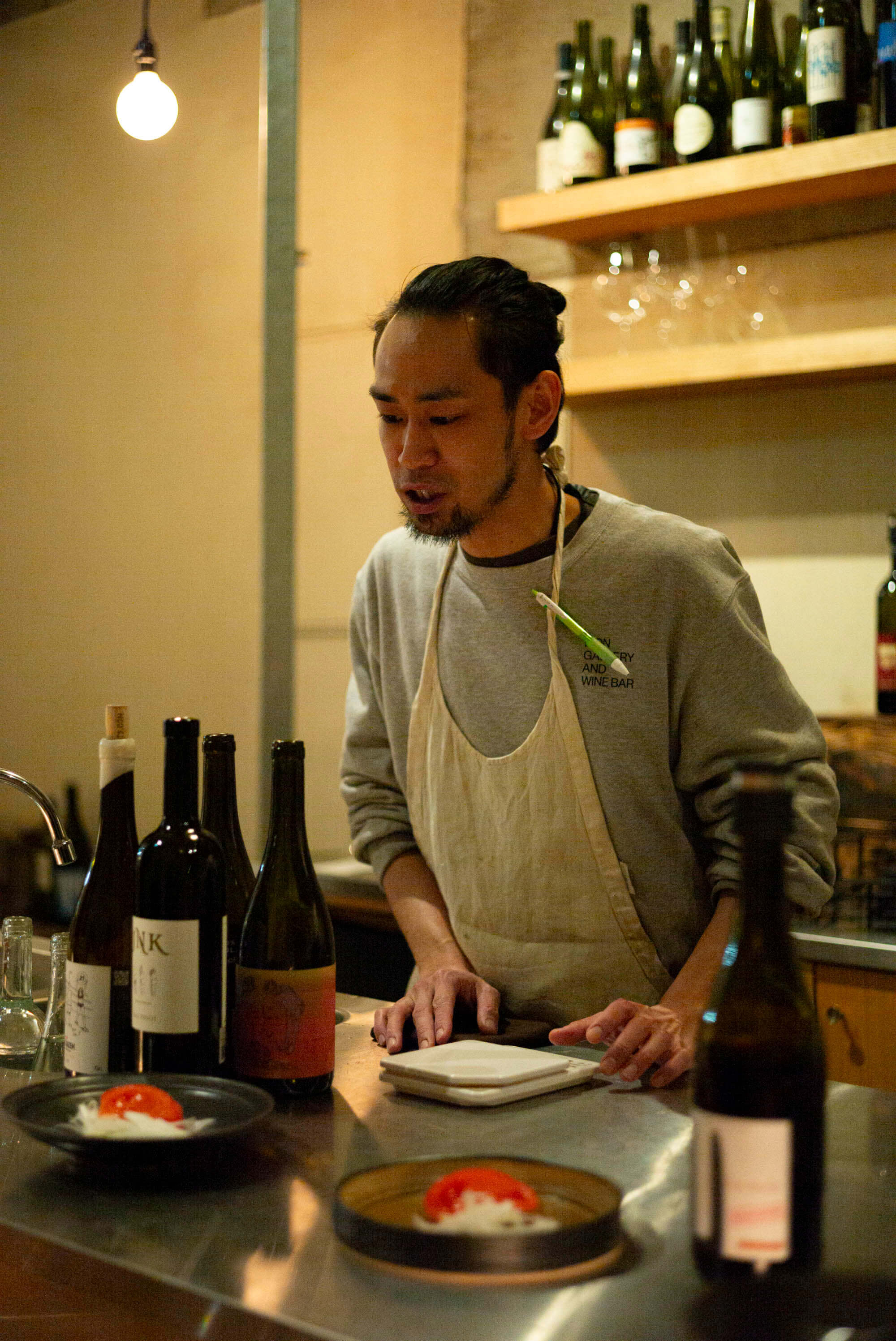 ギャラリーとワインバーがあるからこそ実現できるこのフードイベントは、食好きの私としてはとても楽しい体験でした。展示作品と食がシームレスに交わる空間はなかなか珍しく、特別な時間を過ごすことができました。地元の土で作られた器に、地元の食材が盛り付けられ、それを味わう。当たり前だった時代があったものの、今では非日常の贅沢になっていることに改めて気づかされました。色々な話を聞けたことで、味や雰囲気だけでなく、ストーリーも含めて味わう幸福がありました。食を通じて器や土地の魅力を感じることができるこのような企画が、今後も続けられたら嬉しいです。