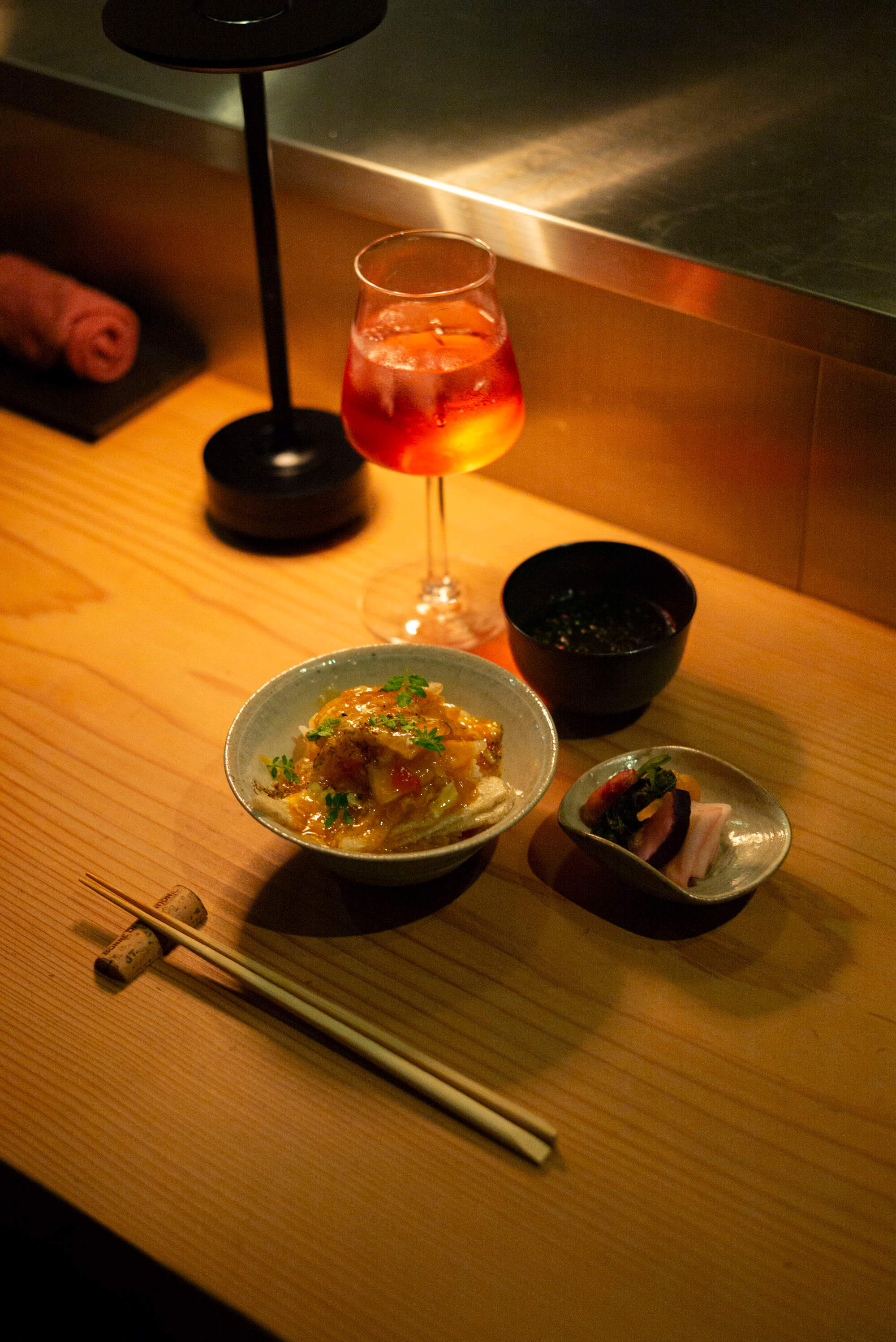 寺内ユミさんデザインの鉄製スタンドMISHINAと3枚の器が持つリズム、器に合わせた美しい飾りつけ、食材を手際よく扱う様子に見入ってしまいます。さらに、料理ごとに語られる素材の話や調理の工夫など、豊富な知識を直接聞けたのも贅沢な体験でした。真衣さんの気さくな雰囲気もあり、料理を待つ時間も楽しく、リラックスした気持ちで味わうことができました。