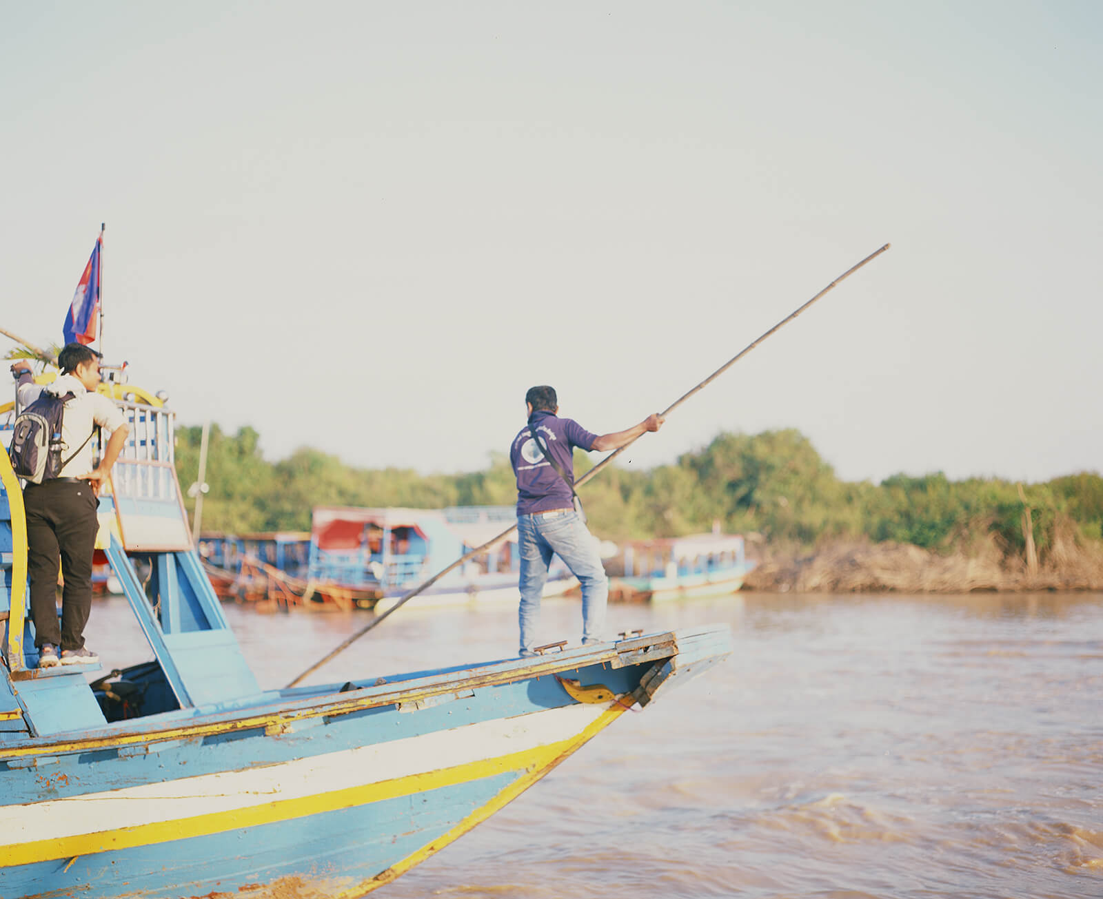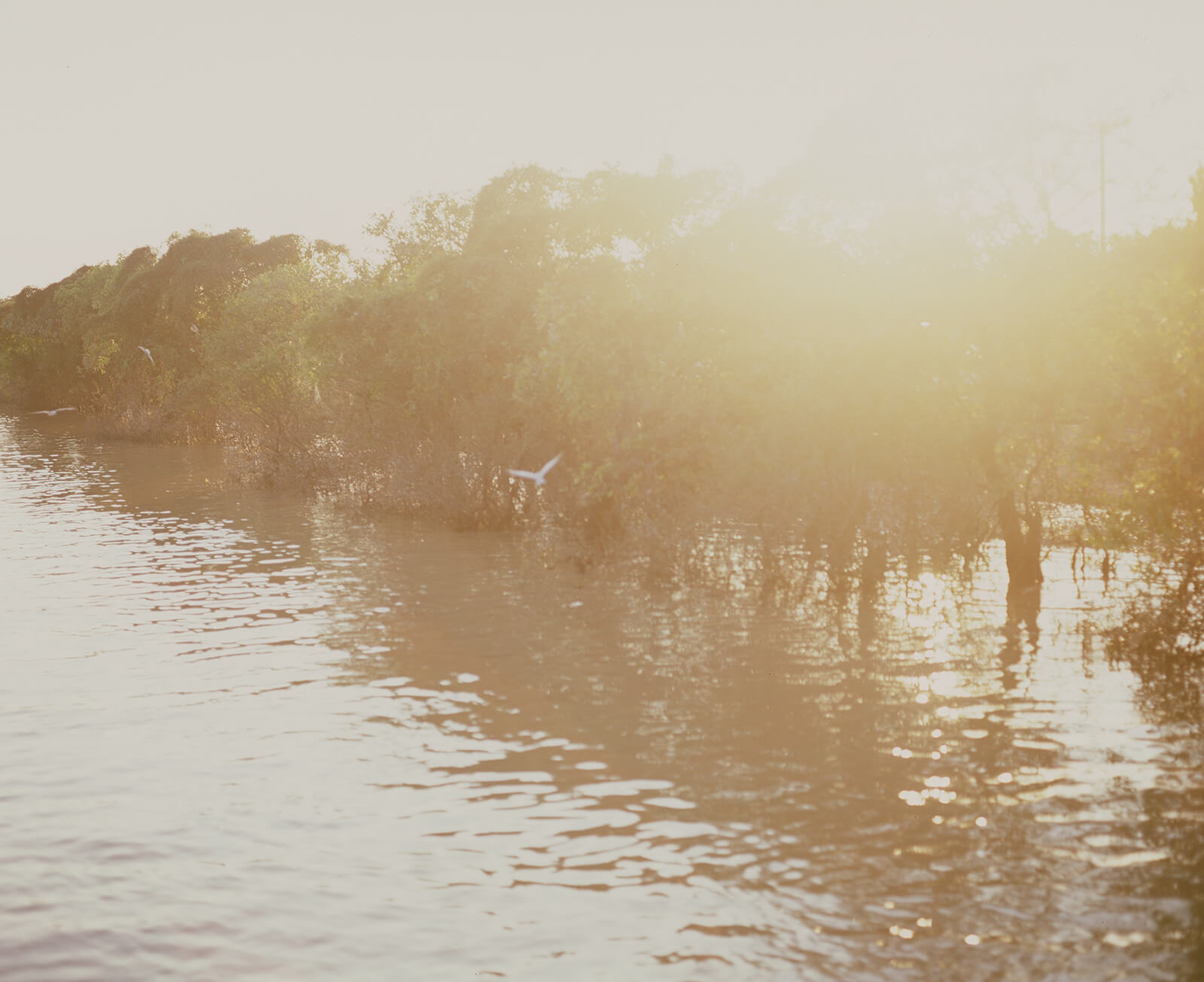 村の間を流れる川を20分?ほど下り、湖に到着。夕陽が湖の向こうに落ちていく景色を眺めながら、のんびりと船に揺られます。