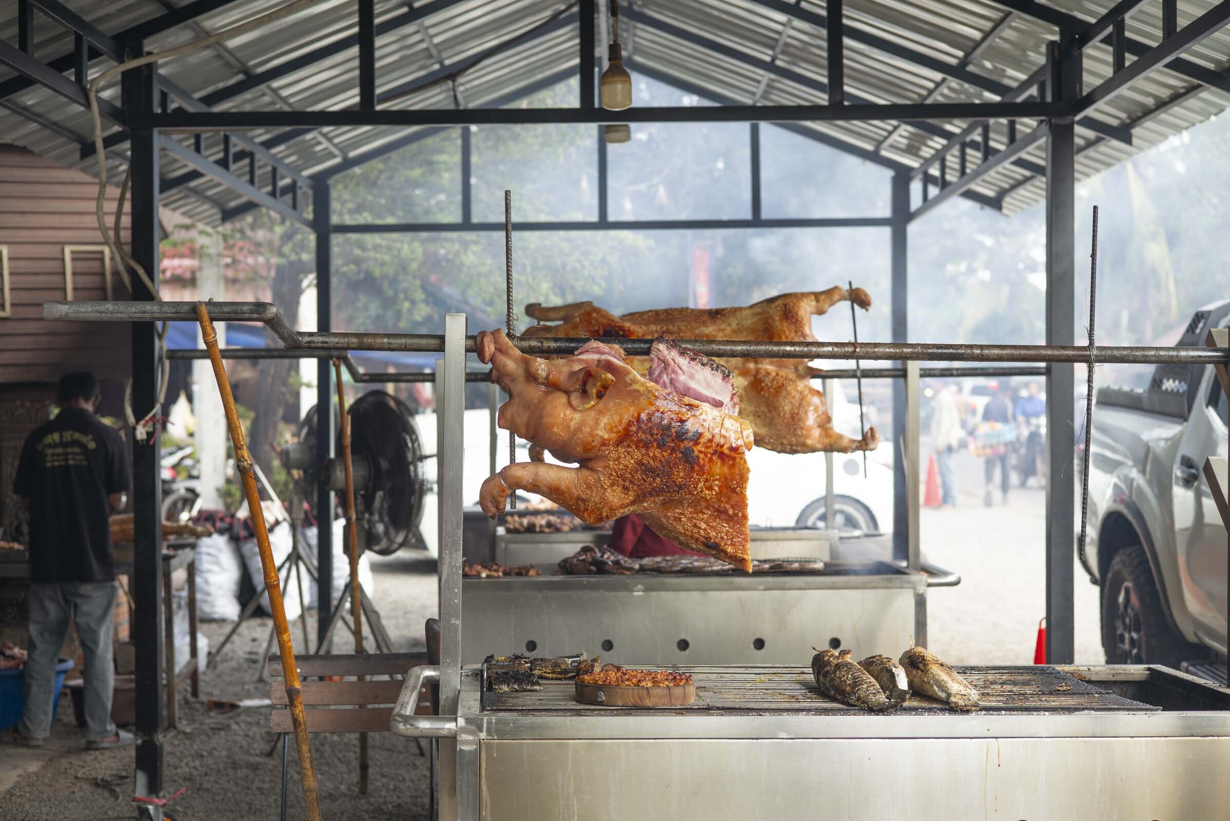 昼食はプラダック村で焼き豚肉。香ばしくてシンプル、ローカルかつとても美味しく、旅のごはんとして最高でした。