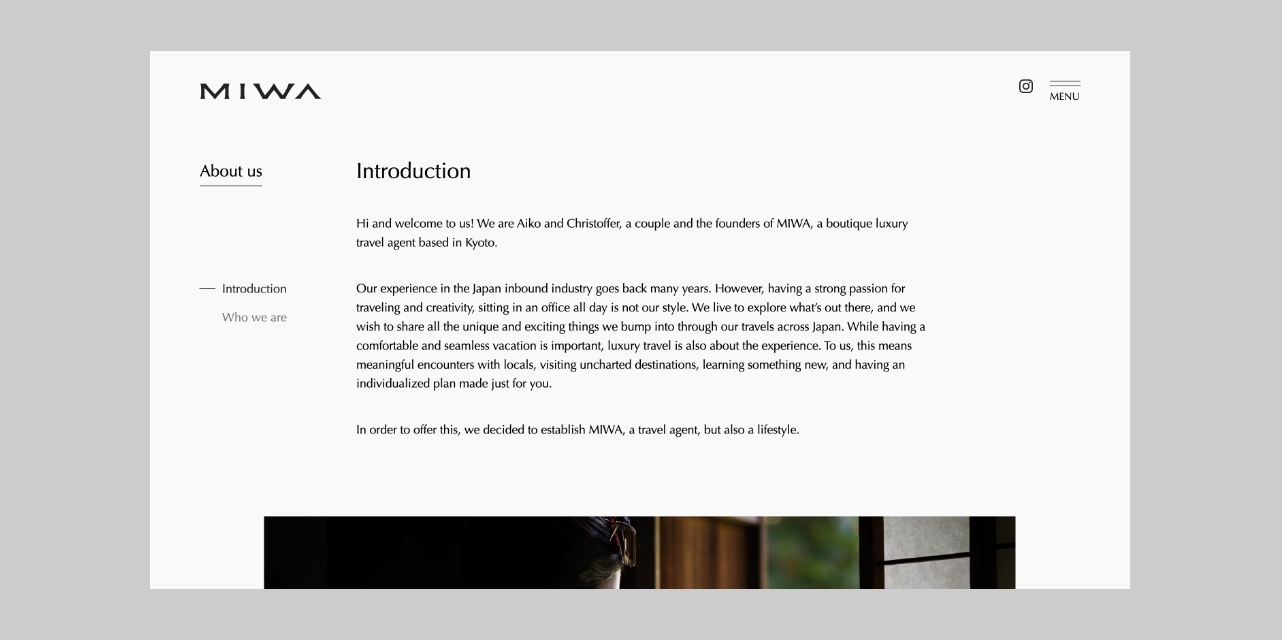 海外からのゲストを対象した旅行会社MIWAさんのブランディングさせていただきました。