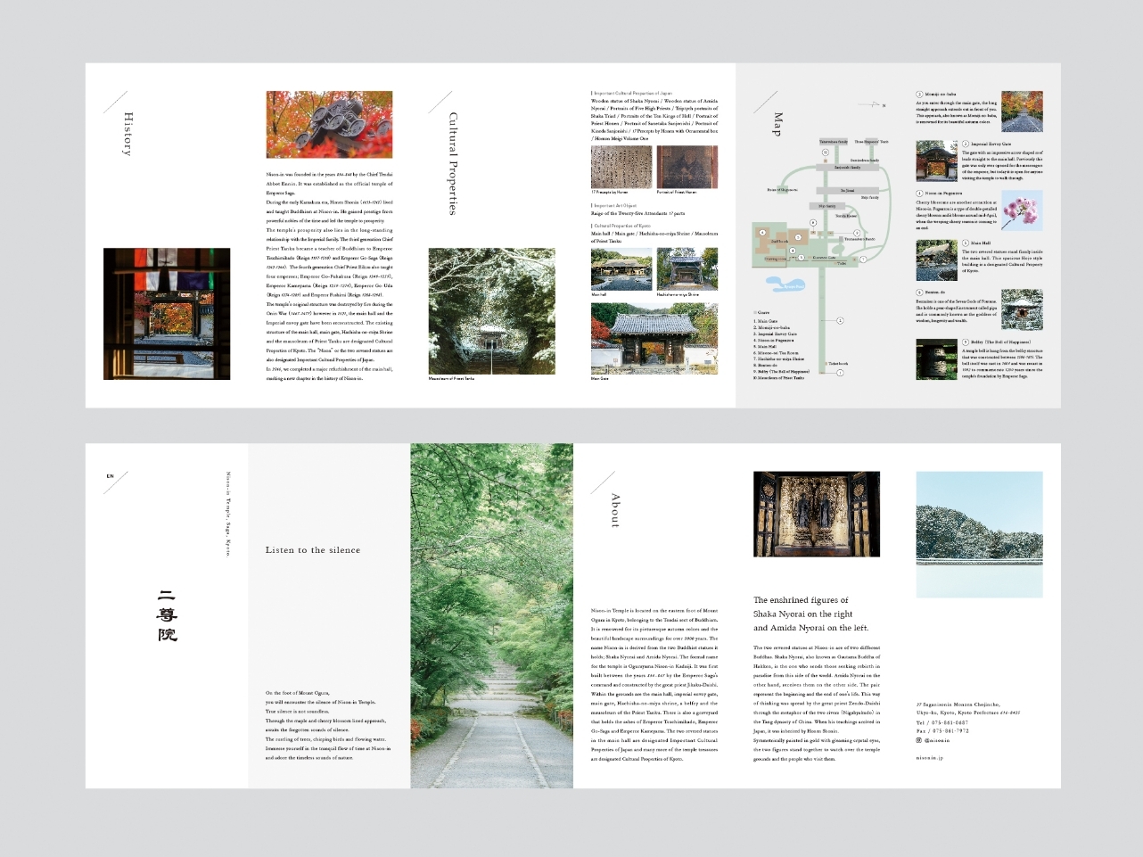 京都、嵯峨にある小倉山二尊院のウェブサイト、パンフレット、絵はがき、ポスターなどの一連のデザイン。