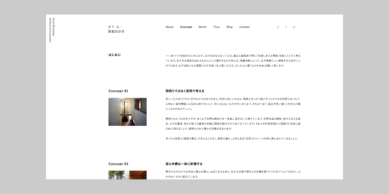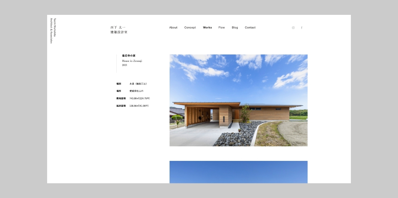 愛媛県伊予市の設計事務所、西下太一建築設計室の ウェブサイト、コンセプトブック、ムービーの制作を担当しました。