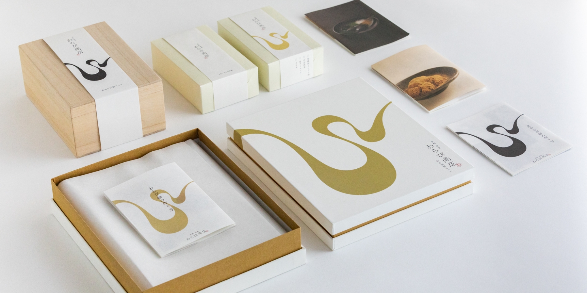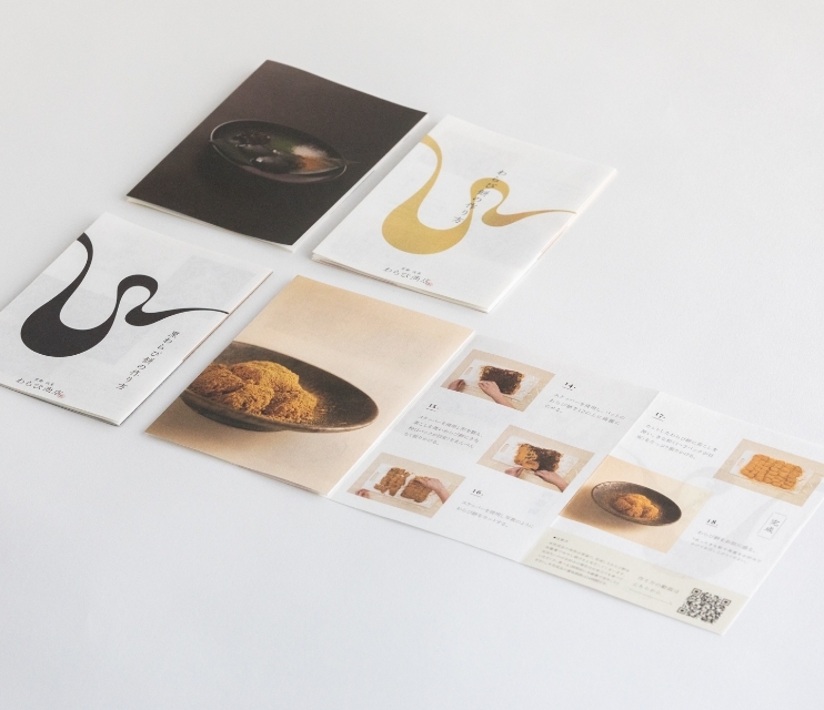 わらび商店のわらび餅はとても柔らかい口溶けが特徴的で、その特徴を、わらびのイニシャルWをぐにゃりとまげることで表現しました。