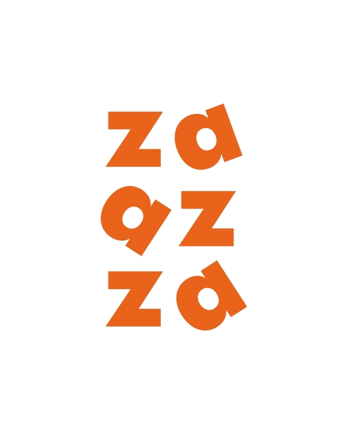 そのコンセプトをロゴで表現するために、ラフさ、カジュアルさのある古い書体をベースとし、aに角度をつけ動きを出し、中段zaをazにすることで、ロゴにリズム感とユーモアを出し、印象の強さを出しました。