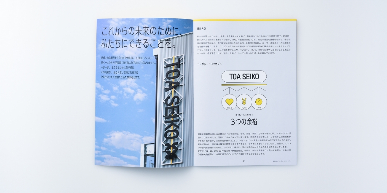 エレクトロニクス産業分野で最先端の技術開発を進める会社「東亜セイコー」のブランディングデザイン。