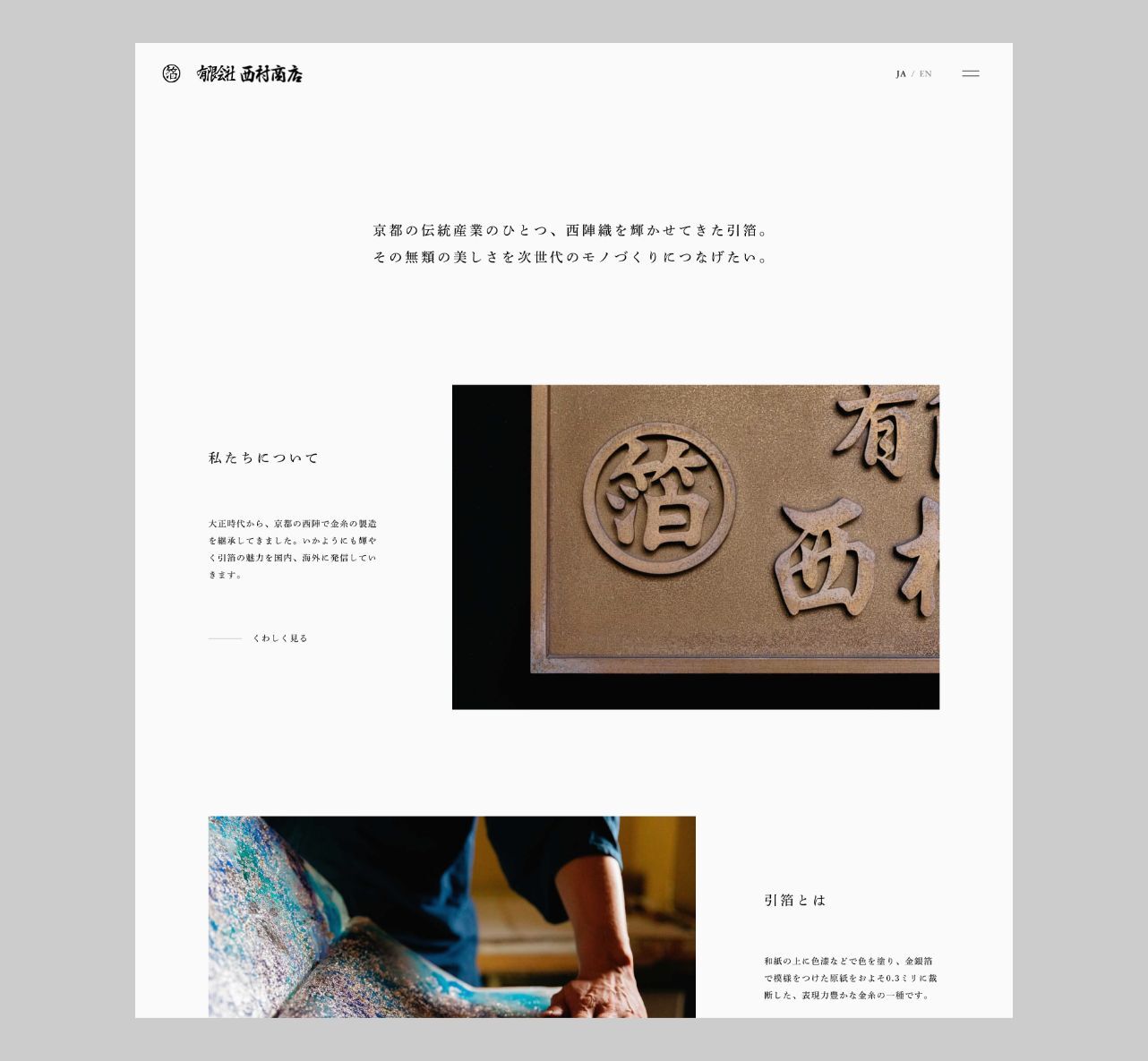 大正13年創業の京都・西陣の引箔屋、西村商店のウェブサイトを制作しました。