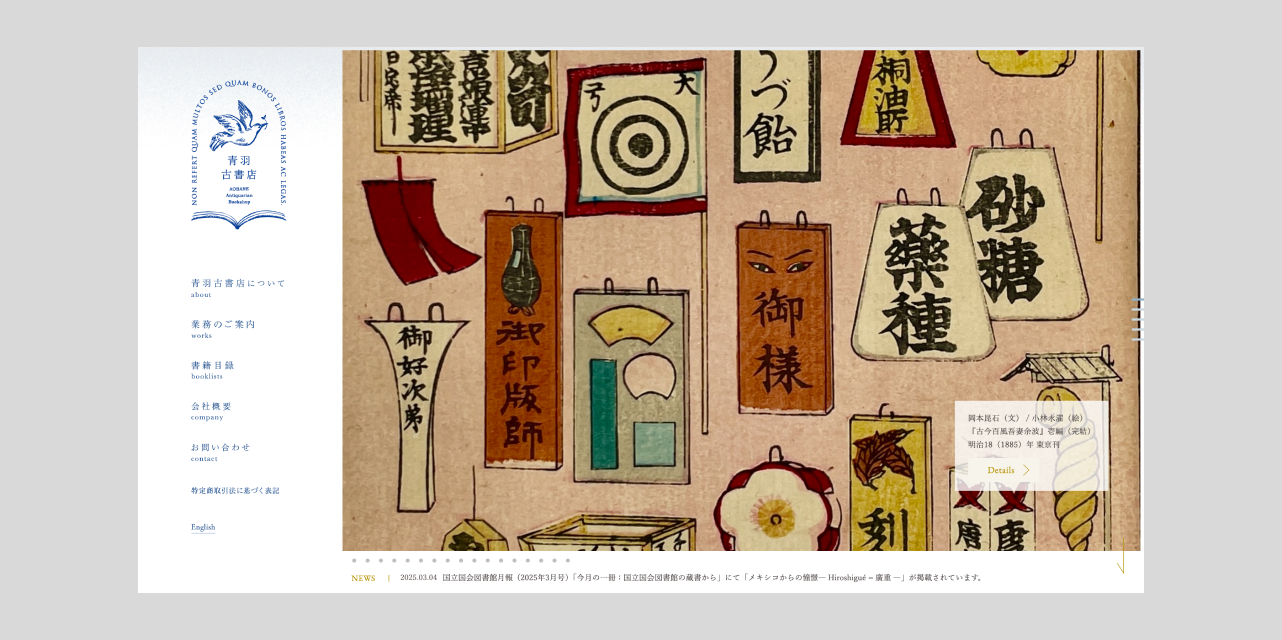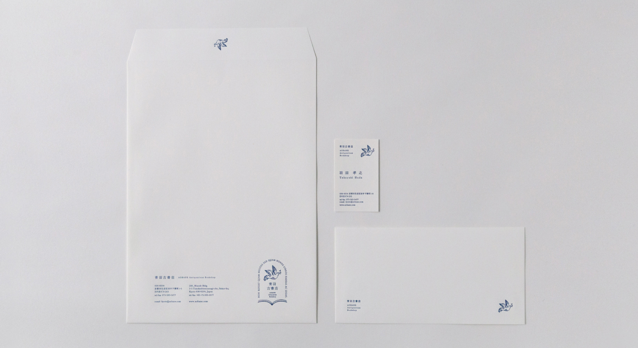 美術書、学術書、洋書を中心に、希少本も多く取り扱う京都の「青羽古書店」のロゴ、名刺、封筒、WEBを制作しました。
