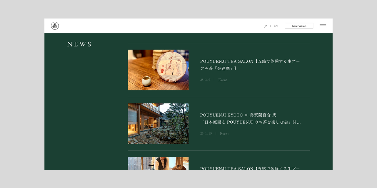 台湾発のティーブランド「Pouyuenji(ポウエンジ)」が京都・八坂にオープンしたブティック、「Pouyuenji Kyoto」のウェブサイト。写真・映像のディレクションも行いました。