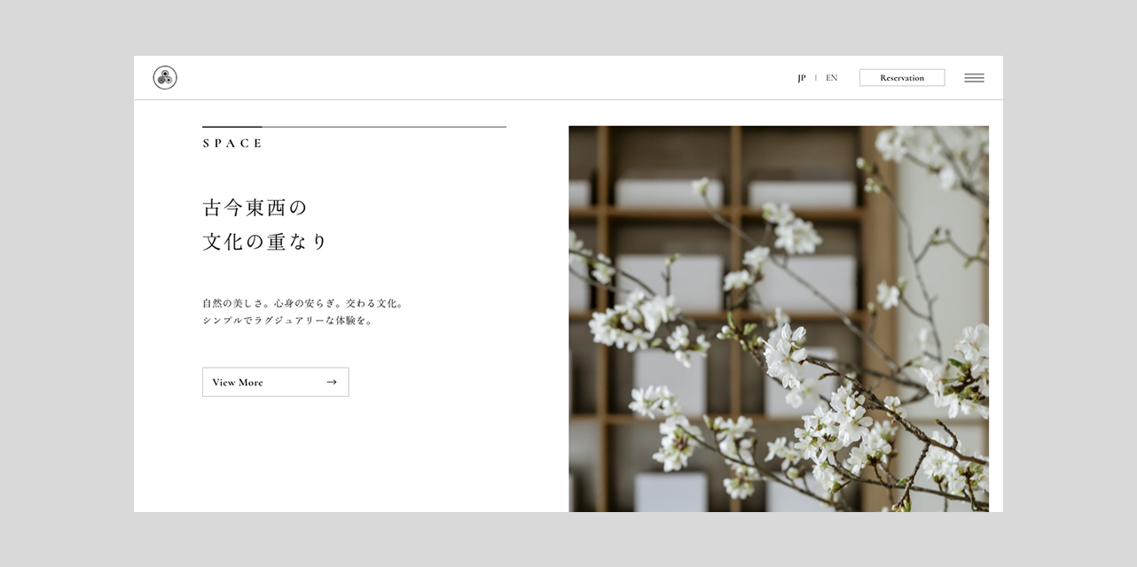 ウェブサイトのデザインは写真や映像を引き立てるように、余白を生かしたシンプルでミニマルなものに留めています。