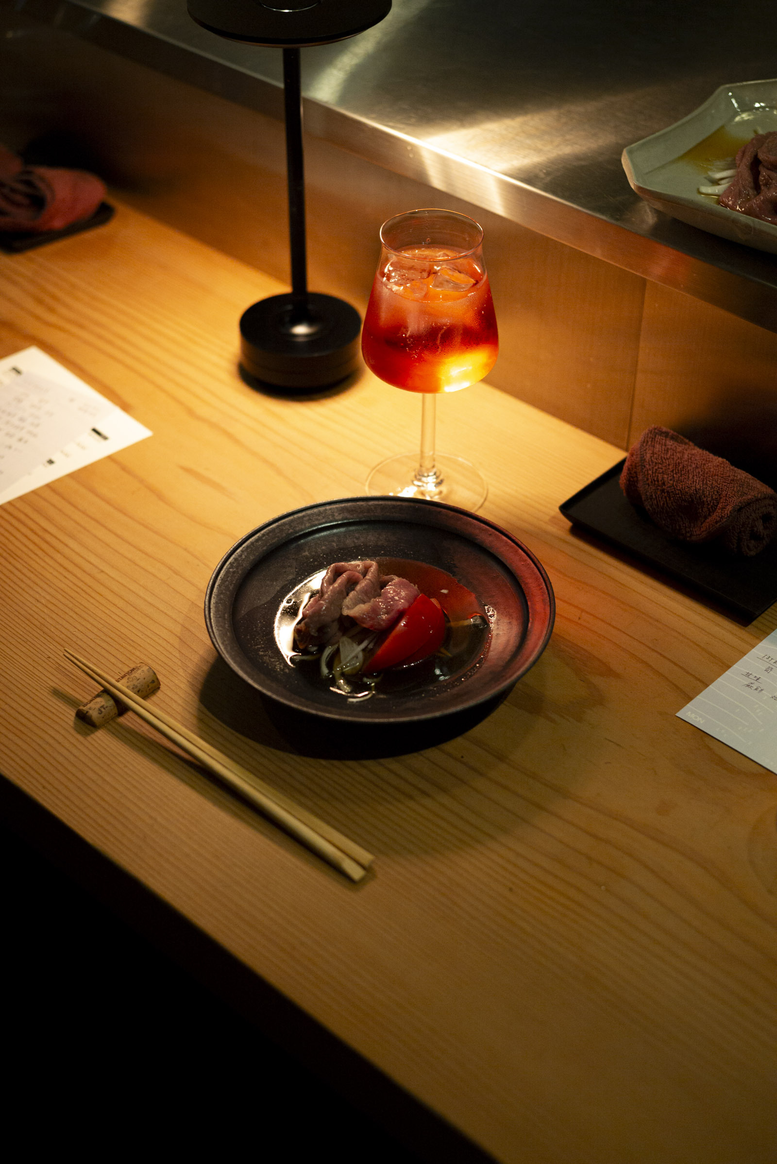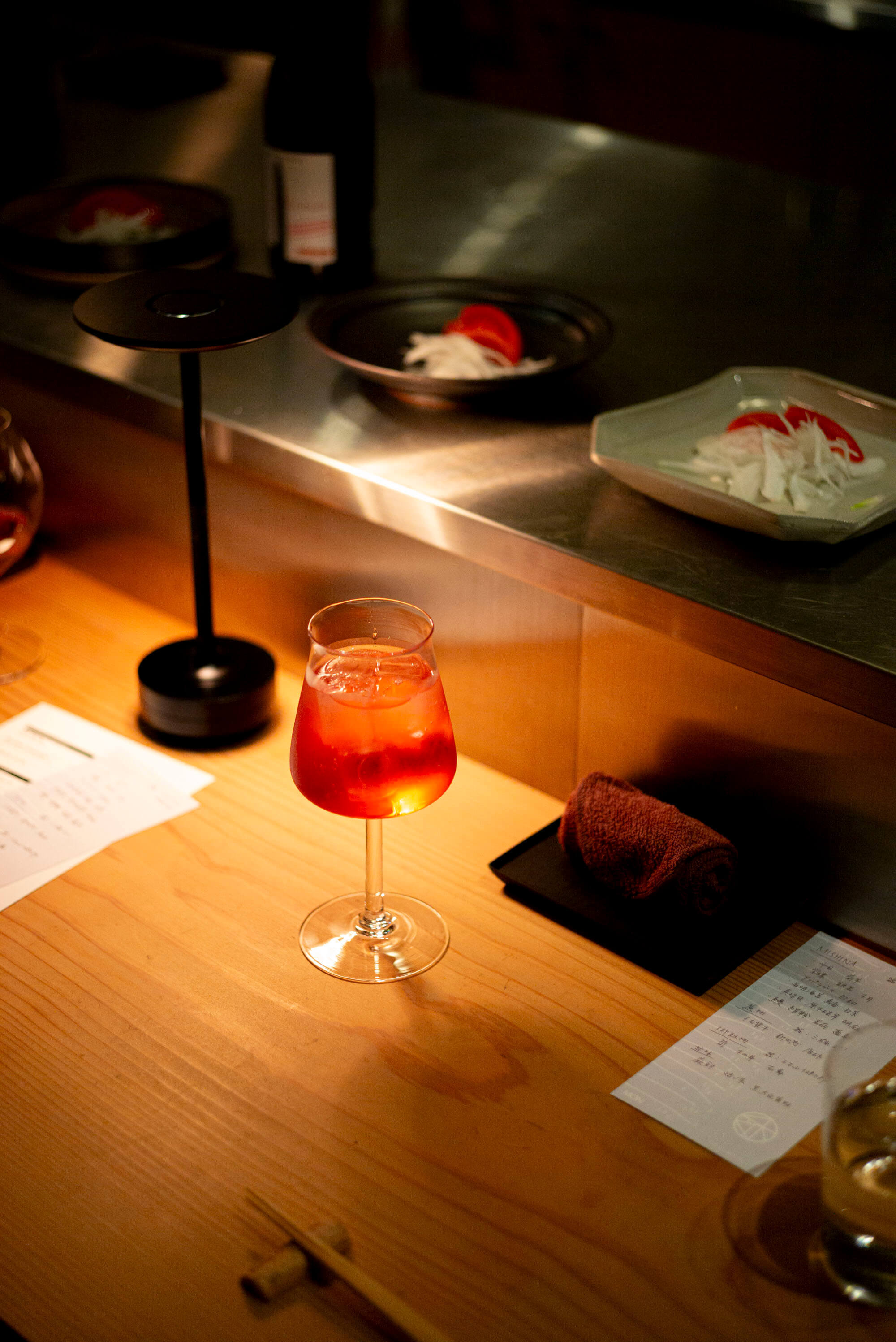この日のワインペアリングは、MONワインバーのソムリエ・力石が担当。私はワインを飲んでいませんでしたが、周囲からは「なるほど」と納得するような声が聞こえてきて、料理とワインの組み合わせに関心を持っている様子が伝わってきました。一方で、私はたまとり特製の赤紫蘇ジュースを注文。爽やかな酸味とほのかな甘みがあり、食事の合間にすっきりとした味わいを楽しめました。