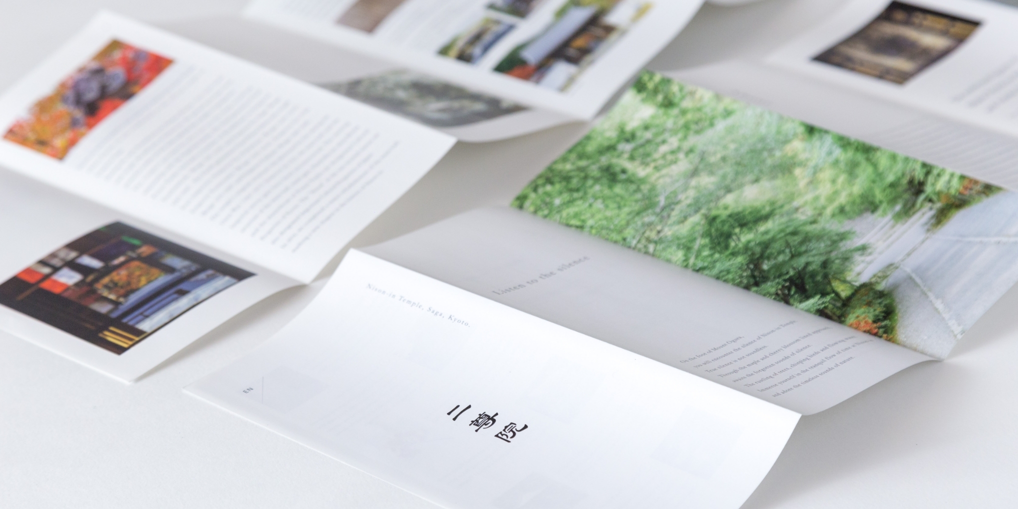 京都、嵯峨にある小倉山二尊院のウェブサイト、パンフレット、絵はがき、ポスターなどの一連のデザイン。