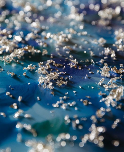 「引箔」とは色漆やラッカー塗料などで彩色・金彩加工した和紙のことで、およそ0.3ミリの糸状の和紙にカットされ、西陣織の帯地などに織り込まれています。