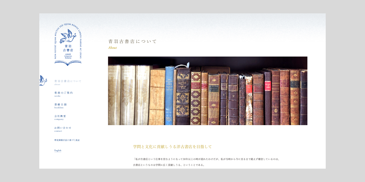 美術書、学術書、洋書を中心に、希少本も多く取り扱う京都の「青羽古書店」のロゴ、名刺、封筒、WEBを制作しました。