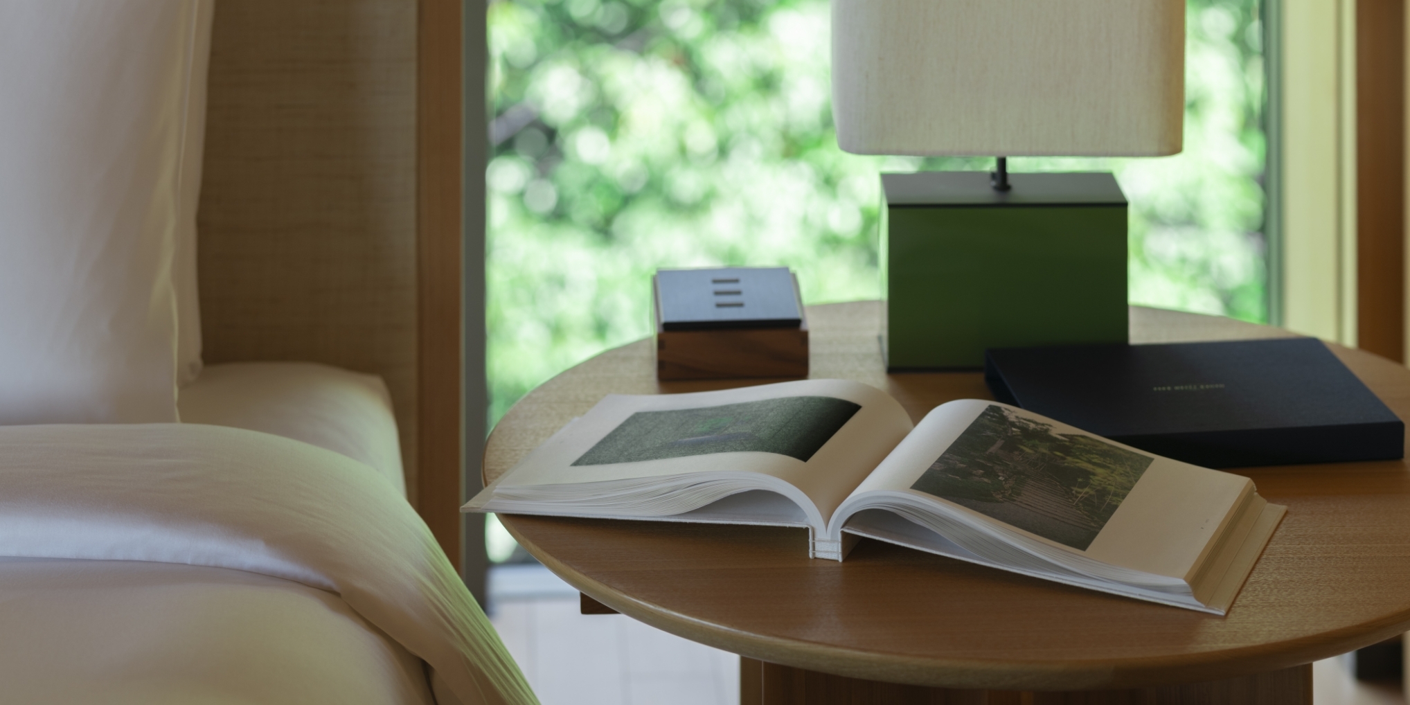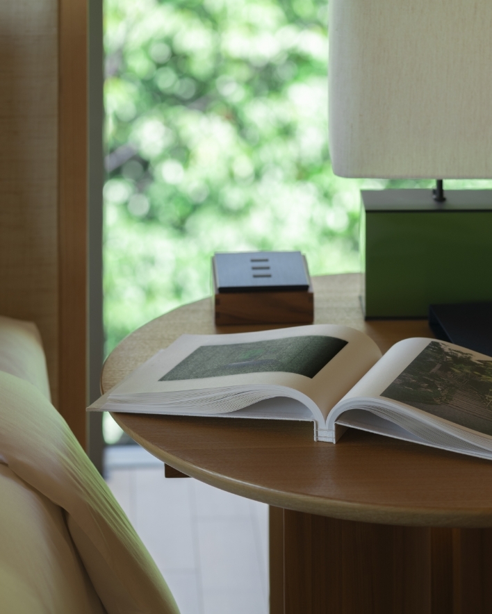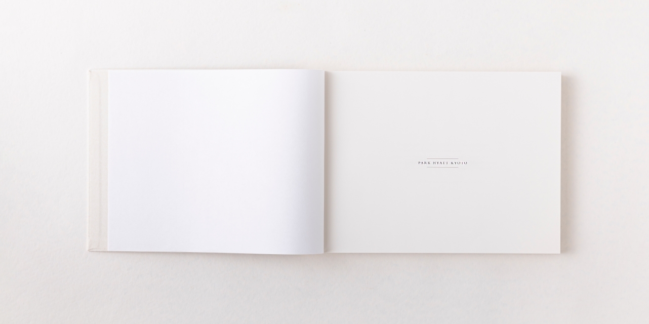 レイアウトは日本のミニマルな美意識をインスピレーション源とし、シンプルで緊張感のあるタイポグラフィと豊かな文脈を含んだ余白で構成されている。 製本には日本の伝統的な技術(和綴じ)を採用し、職人による手作業で一つ一つ綴じられている。和綴じは糊を使用しないため耐久性が高く、環境負荷も低い。また開きもよく、客室やラウンジでの長期間の展示にも適している。見た目やたたずまいの美しさと機能性の双方を兼ね備えた技術といえる。 隅々まで日本の美意識を行き渡らせ、パーク ハイアット 京都の歩みとその未来を祝福するのにふさわしい本に仕上げた。ホテルの客室や世界中のパーク ハイアットホテルのライブラリーやラウンジにも設置される予定である。